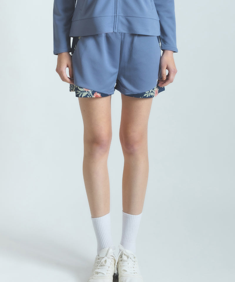 前後のタックとレイヤード風の裾デザインがポイントのキュロット風ショーツ。