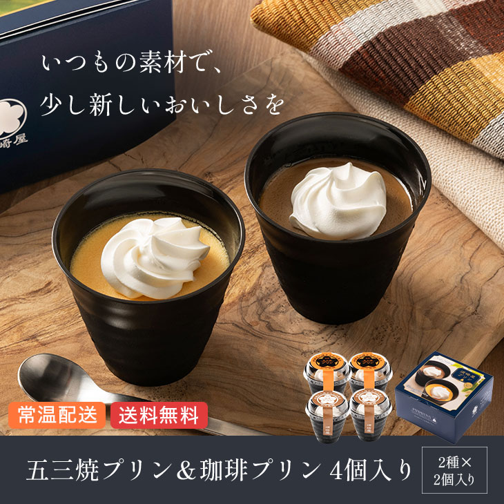 産地直送「和三盆糖 長崎五三焼プリン&珈琲プリン アソート 4個入」¥3,370(送料無料)